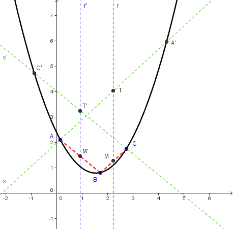 L'idea della costruzione si basa sulla seguente proprietà di simmetria delle parabole.