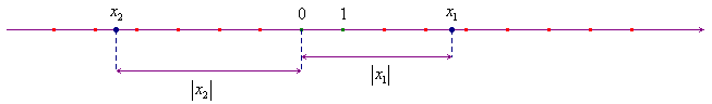 Dal punto di vista grafico questa funzione ha una importantissimo significato. Data la retta reale, su cui si sia stabilito un sistema di ascisse, il valore assoluto, o modulo, di un numero reale x, rappresenta la distanza di x dall'origine.